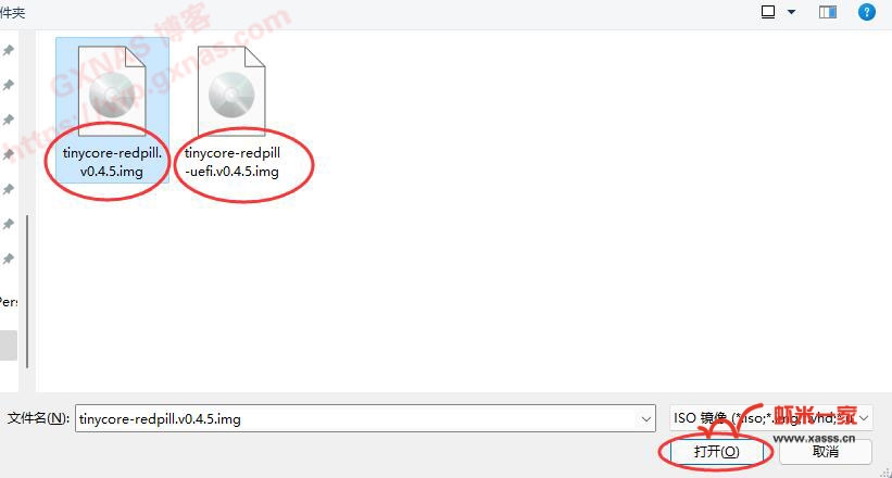 六、找到第三步骤下载的文件(如果下载的是.gz文件,需要先解压出来,才有.img文件),根据NAS主机是使用uefi还是legacy启动方式,选择对应的文件,打开。